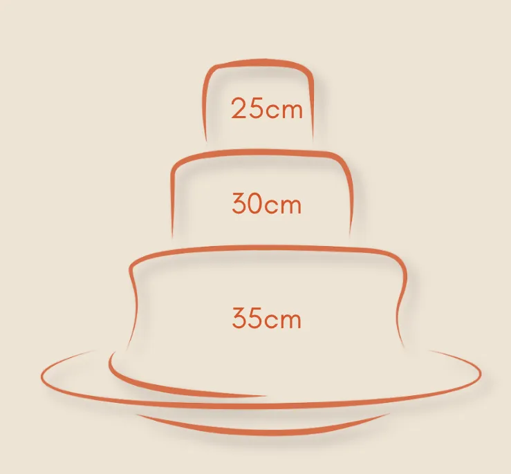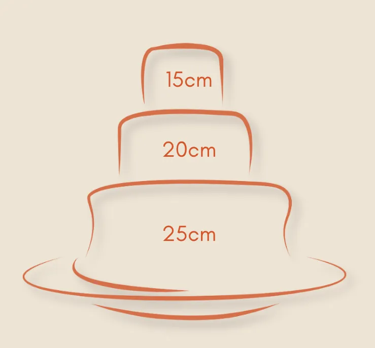 The sizes shown are examples of popular size choices. Other combinations of tier sizes are possible to accommodate the amount of cake you need, and the look you love!.